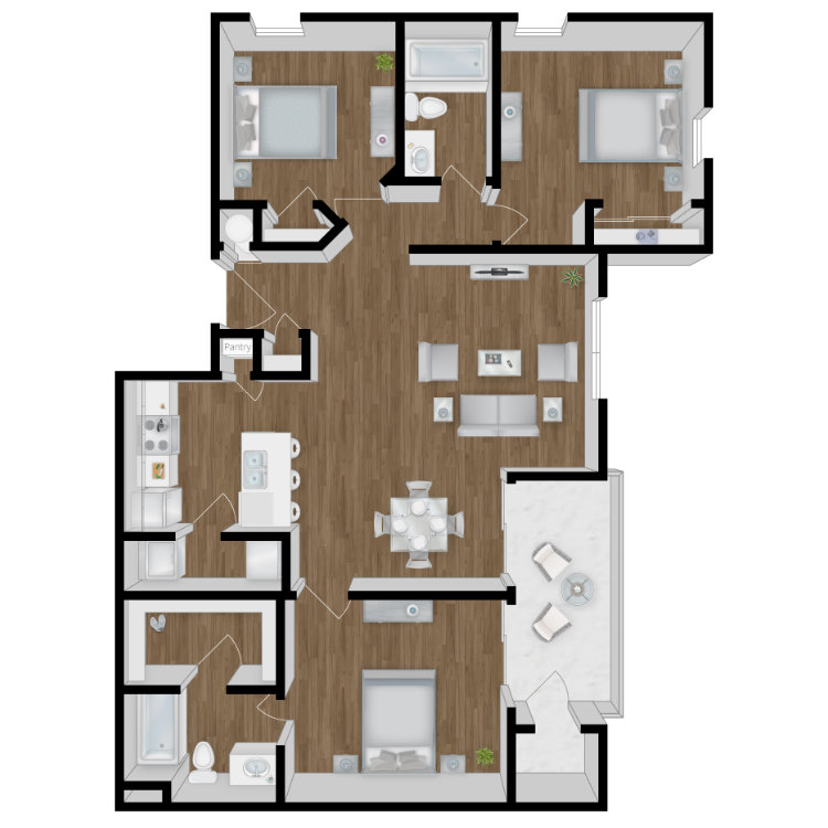 At Crystal Falls Crossing we proudly offer spacious and affordable two and three-bedroom apartments for rent, designed with modern features to fit your lifestyle. Each floor plan includes central air and heating, generous storage space, walk-in closets, and full-size in-home washers and dryers. Cook like a pro in your all-electric kitchen, fully equipped with a refrigerator, dishwasher, and pantry. Designed with your comfort in mind, our apartments for rent are sure to exceed your expectations.